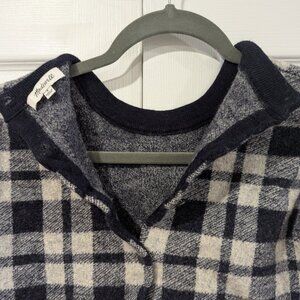 Madewell Gingham Sweater, 100% merino wool, black and white, functional back buttons, size small