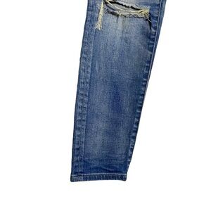 Condition: Pre Loved - Good, Slight Signs of Wear, can't tell if jeans were bought distressed or distressed naturally, sewn interior patch over one of the holes, minor stains on back pockets, see photos for close ups