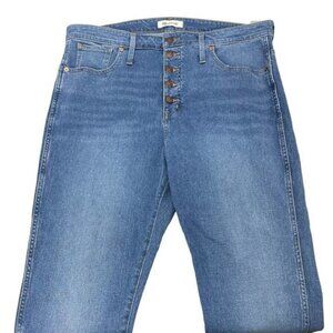 Madewell High-Rise Skinny Jeans Button Down Hem Distressed Denim 34
