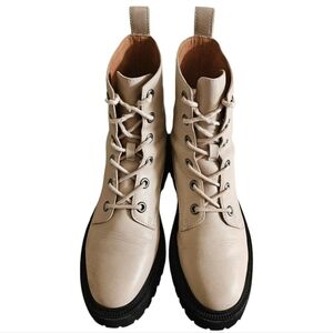 Madewell Lace-Up Lugsole Chunky Moto Biker Ankle Boots in Leather Size 6.5
