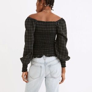 Madewell Lucie Bubble-Sleeve Smocked Top in Plaid - S