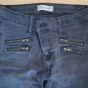 Madewell skinny skinny jeans in midrise with moto zipper detail. They are soft, with a slight stretch, making them super comfortable.