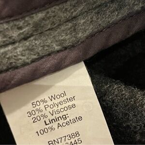 very good condition. single button closure with patch pockets and contrast grey collar. unlined - perfect for layering and as a spring/fall coat. coat size XS but fits quite oversized - could fit an S even and M depending on desired fit.