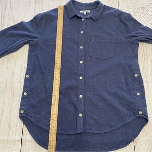 Classic navy button-down by Madewell. Features a single chest pocket and button cuffs. Flannel.