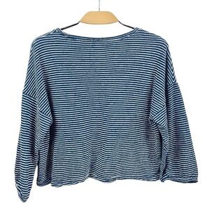 Madewell Navy Striped Bubble Sleeve Cotton Slub V Neck Sweatshirt Size L