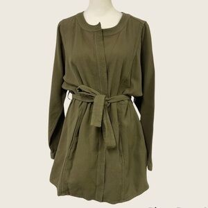 Madewell Olive Green Stitch Edge Duster Utility Jacket Cardigan tie waist XS