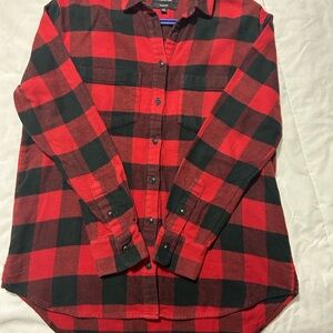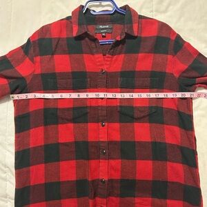 Embrace a timeless look with this Madewell shirt, featuring a bold red and black buffalo plaid pattern. Crafted from soft flannel, it's perfect for casual outings and adds a touch of rustic charm to your wardrobe.