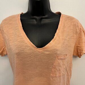 Madewell Peach Cotton V-Neck Short Sleeve T-shirt, Size Medium