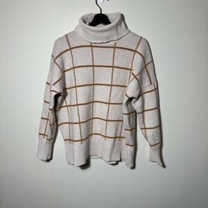 Madewell Pearldale Turtleneck Sweater Windowpane In Cream Size M cotton/wool