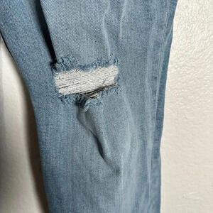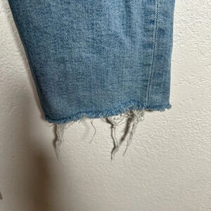 Style tags: Raw hem, high rise jeans, light wash, distressed, stretchy jeans
