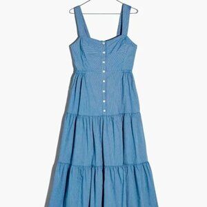 Madewell Petite Button-Front Tiered Midi Dress in Stripe - Size 4
