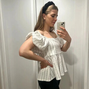 Madewell Puff-Sleeve Empire Top white and black Size Medium