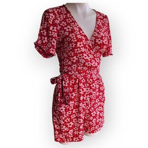 #Madewell #Romper #Red #DaisyPrint #Bohemian #Pocketed #WrapFront #Size2