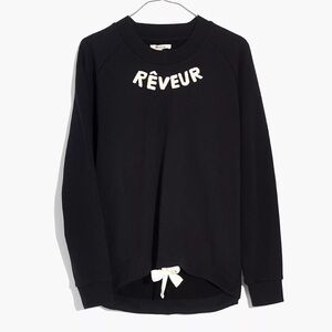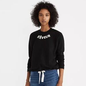Inspired by the Japanese concept of "one-mile wear," Mile(s) by Madewell is a collection for all the stuff you do close to home—the post-workout hangs, the neighborhood coffee strolls, the couch marathons. Made of soft fabrics in sleek shapes, it's your new weekend-starts-now uniform. Take this cozy sweatshirt—it has a drawstring at the hem that can be pulled tight for a cocoon shape and is chain-stitched with our new favorite French word (hint: rêveur means &q