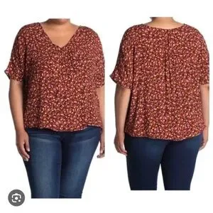Pretty in floral, the Rhyme top features an allover print and billowy silhouette. Fit: this style fits true to size. V-neck. Short sleeves. Back keyhole cutout with button closure. Floral print. Woven construction.
