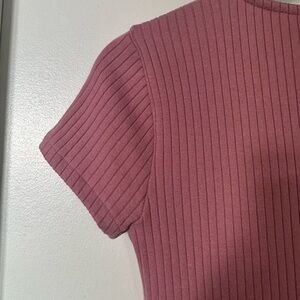 Features short sleeves and crew neckline. Button down closure with wood buttons, can also be easily slipped on over head.
