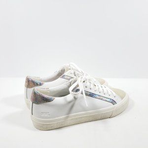 Madewell Sidewalk Low-Top Sneakers in Iridescent Leather - White 7M Brand new Excellent condition We designed our sneakers with the idea that shoes should be comfortable from the get-go. Case in point, these low-tops have MWL Cloudlift insoles for a supercushy, ultra-supportive fit that feels like walking on a...well, you know. And they're cute too—this pair has neutral suede and iridescent leather accents. Leather upper. Man-made sole. MB856