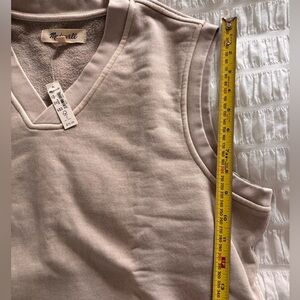 Elevate your wardrobe with this stylish sleeveless V-neck top Maxwell sweatshirt. Perfect for layering or wearing on its own, this tan top offers a versatile and chic look.