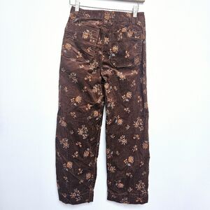 Madewell Slim Emmett Wide Leg Cropped Floral Corduroy Zipper Choco Pants Sz 24