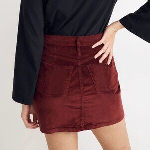 Madewell Stretch Velveteen Straight Zip Mini Skirt in Dark Cabernet
