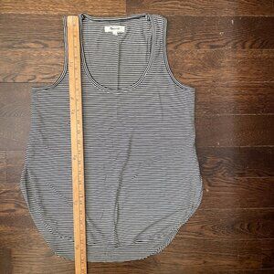 Selling a Madewell Strum Striped Black and White Tank Top-Small. Supersoft and drapey tank has a flattering scoop neckline and cool crossover sides. 100% Lyocell. Gently used.