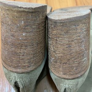In good condition. The suede shows signs of wear. Please see photos. The soles and insoles show signs of wear as well. No flaws