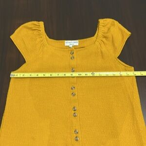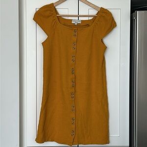 Sunny button-front dress with elastic cap sleeves that can be worn on or off the shoulder