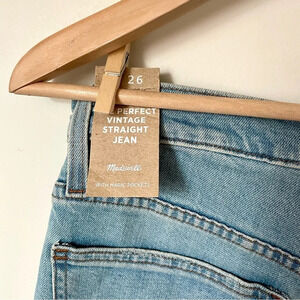Madewell The Perfect Vintage Straight Jean in Danby Wash: Knee-Rip Edition. The cut: A best seller, our new straight-legged '90s supermodel jeans have a waist-accentuating high rise complete with the holds-you-in sorcery of our Magic Pockets in front. The fabric: Premium denim that combines the structure of rigid with a touch of stretch for day-one comfort. Size 26. Brand new with tags.