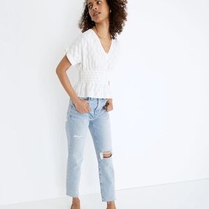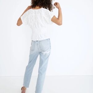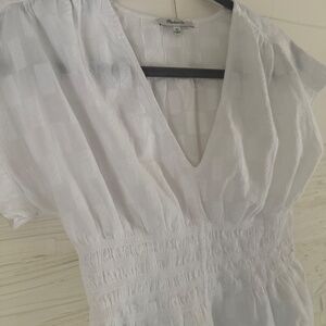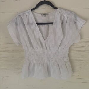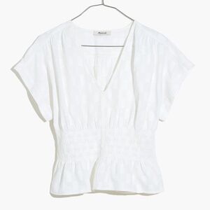 Madewell V-Neck Smocked-Waist Top | Size XS | White Jacquard
