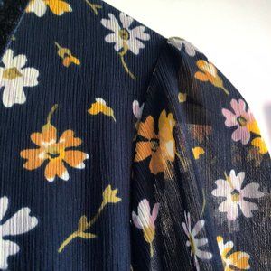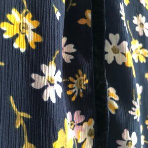 A wear-(almost)-anywhere floral top with a cool square neckline, retro-romantic velvet trim and a subtle peplum hem. Lovely material, flattering cut, bodice is fully lined.