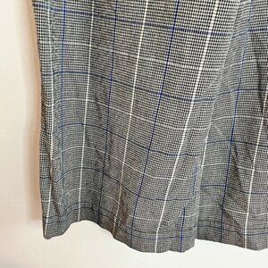 • Color: Black, white, and blue plaid/houndstooth pattern