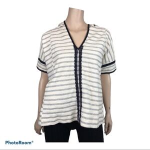 Madewell Women’s XS 100% Cotton Elise Short Sleeve Oversized Striped Terry Hoodie Hoody