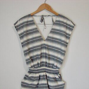 Madewell Yucatan Striped Romper Shorts Sleeveless Summer Blue White Size XS