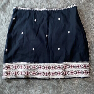 🖤🤍Gorgeous detail timeless style Madewell black embroidered Gamine mini skirt Sz 6 approx measurements missing content details preloved worn peeling wear/ lining stain consigned /selling as is needs to be dry cleaned photographed same day shipping from smoke free home