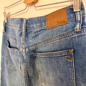 The high-rise slim boyfriend by Madewell. Ripped detailing on both knees with a raw hem.