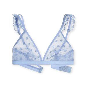 Madewell dusty blue floral embroidered mesh bralette in rainwashed peri size M