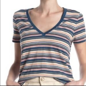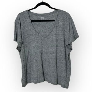 Madewell linen puff sleeve button up top with elastic shoulder.