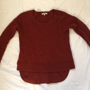 Beautiful rust/terracotta orange XS sweater from Madewell, in great used condition. Very comfortable, and a good transition season piece- looks great as a layer. Drop shoulder with a great ribbed neckline and hem, and scooped hem in back.