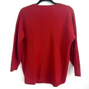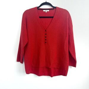 In a cozy waffle knit, this V-neck henley pullover has a relaxed fit and a shirttail hem. So comfy with jeans or leggings . Color is Heather poppy- a bright red. Perfect for the holidays! Slightly oversized fit.