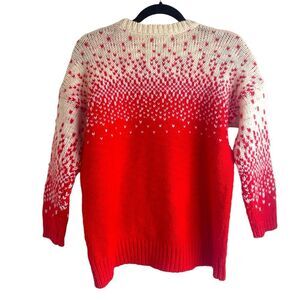 Madewell Drift Stitch Wool Blend Ombre Heart Print Red and Cream Sweater