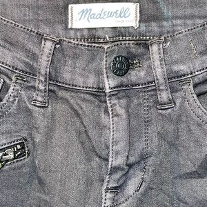 Madewell Skinny Skinny Ankle Jeans with 5 leg zipped pockets and two ankle zippers.