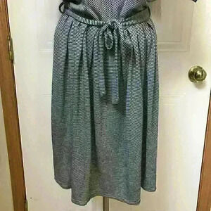 Madigan Dress Mini Striped V-Front Back Tie Belt Black White