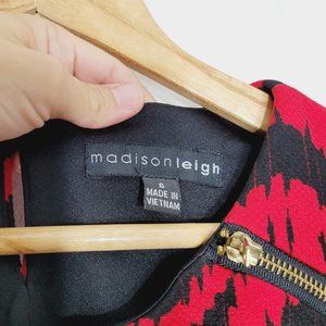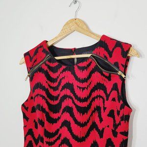 Madison Leigh Sheath Dress Red Black Wave Pattern Sleeveless Keyhole Zip Size 6