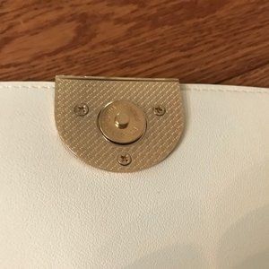 Lovely Madison West Purse, cream coloured with gold trim and next to new condition. Faux leather. Perfect for an afternoon or evening event.