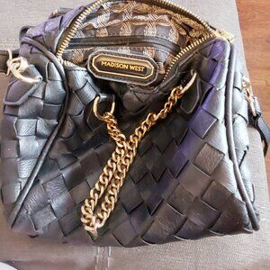 This Madison West black woven crossbody bag with a gold chain is in excellent condition. This stylish bag is perfect for carrying your essentials while adding a touch of elegance to your outfit. There is still plenty of life left in this purse! Don't miss out on this fashionable find!