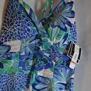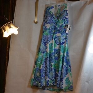 Lined halter dress floral blue, green white collars. NWT Sizes 14P and 12