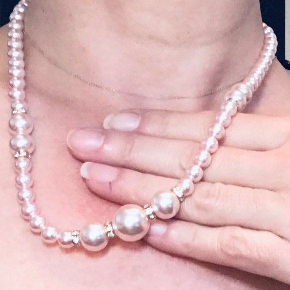 Beautiful Baby Pink graduated Pearls with crystal encrusted stations