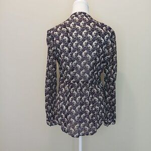 Maeve Animal Print Semi-Sheer Popover Blouse Eggplant Purple Size 2