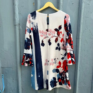 Sweet soft knit floral dress from Maeve Anthropologie. Bell sleeves, easy throw on shift style with a swing skirt.