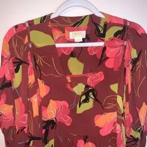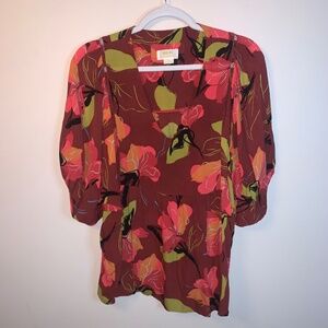 Maeve Anthropologie Beth Dolman Multi Floral Tunic Blouse Bloomcore